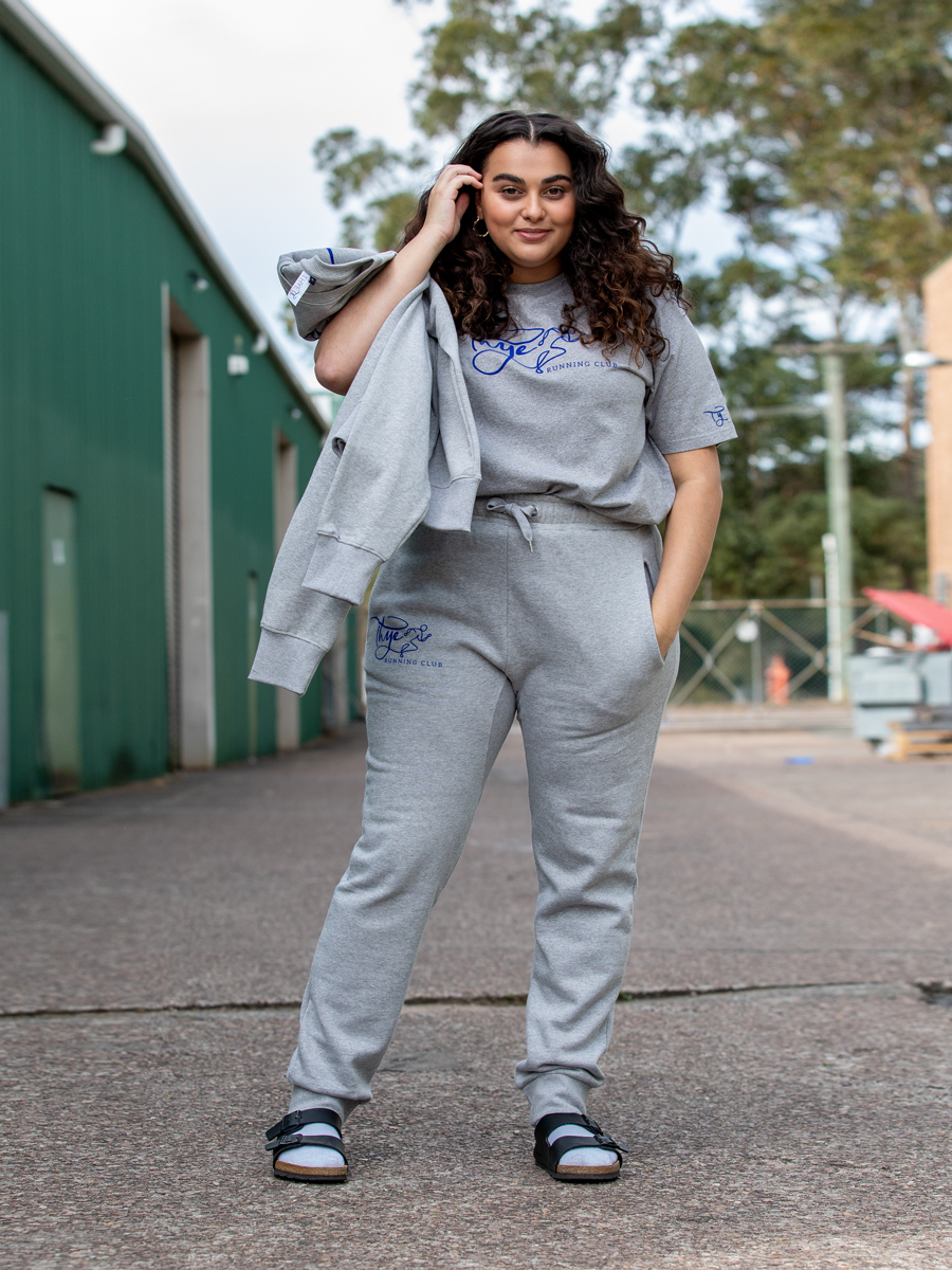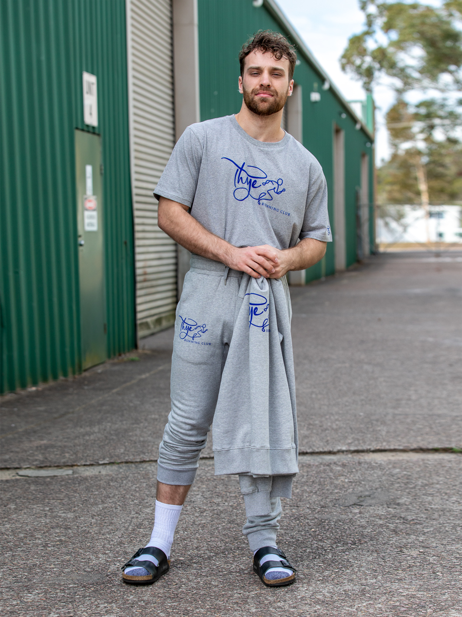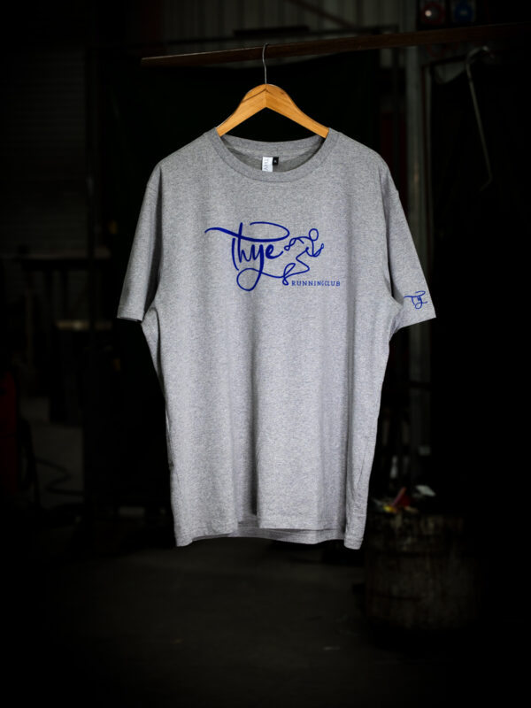 Organic lightweight jersey tee with flocked Running Club logo Jersey 4.57 oz / 155 g